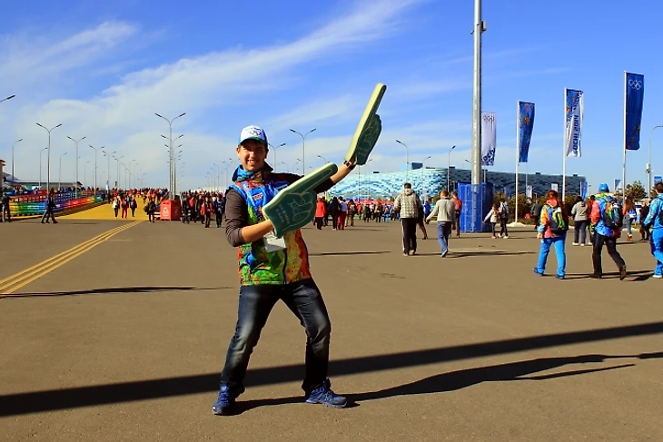 Роману 18 лет, он приехал из Ижевска, и сейчас отплясывает на территории Олимпийского парка, приветствует гостей, указывает дорогу и предлагает каждому дать пять.