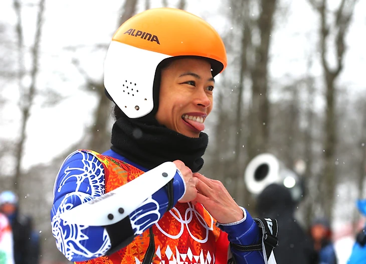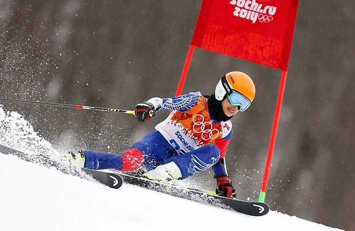 Sports.ru показывает фото с выступлений знаменитой скрипачки в гигантском слаломе.