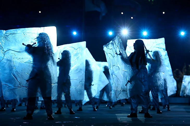 Лед расколот и растоплен, чашу паралимпийского огня зажигают Сергей Шилов (шестикратный чемпион, трехкратный серебряный и бронзовый призер Паралимпийских игр по лыжным гонкам среди спортсменов с поражением опорно-двигательного аппарата) и Олеся Владыкина (двукратная чемпионка, серебряный и бронзовый призер Паралимпийских игр по плаванию среди спортсменов с инвалидностью):