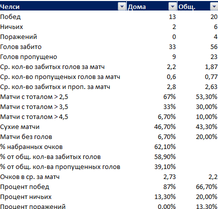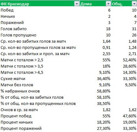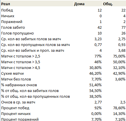 Не для никого не секрет, что многие букмекерские конторы выдают свои котировки, основываясь на статистических показателях команд. На это же опираются многие игроки, желающие выиграть на ставках. В этой публикации не будет никаких красивых слов о лучшей игре с мячом на Земле. Только статистика. Ничего лишнего.