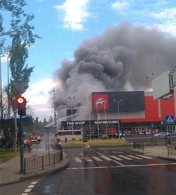По сообщению пресс-службы ХК «Донбасс», «в ночь с 26 на 27 мая вооруженные люди ворвались в Арену «Дружба», связали охрану, вынесли оргтехнику, плазменные экраны, средства связи, сейф, который находился в фан-магазине, угнали служебный автомобиль, и совершили поджог спортсооружения».