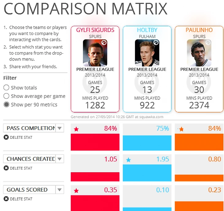 Сигурдссон и Паулиньо представляют бОльшую голевую угрозу, чем Холтби, однако применительно к владению мячом и созданию моментов показатели Льюиса больше схожи с теми, что были у Дэвиса в «Саутгемптоне».