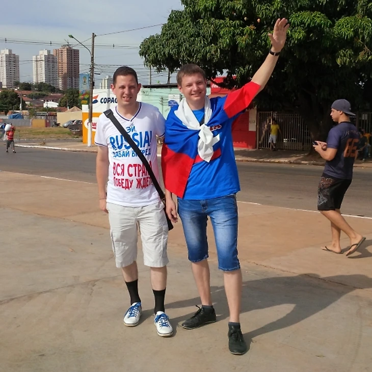 – Мы из Кирова. Решили поехать в Бразилию, потому что сборную нужно поддерживать. Она у нас одна.