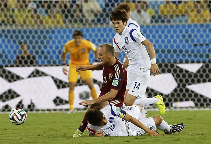 - Перед игрой Россия — Южная Корея все посмотрели матч Бразилия — Мексика. Там был сумасшедший накал, бешеные скорости. Нам всем хотелось увидеть что-то похожее в игре сборной России. Хотелось бы видеть от России футбол такого же уровня. Что касается игры. Не понравился унылый первый тайм. Не понимали игроки, что делать. Сказался мандраж. Многих игроков он сковал настолько, что люди просто пропали, как тот же Шатов. Со временем он будет лидером сборной, но в этом матче… Я думал, его поменяют после первого тайма. Я ждал выхода Дзагоева. В первом тайме и подходов толком не было. Второй тайм обнадёжил. Да, была ошибка, но такие у всех бывают. Игорь Акинфеев выручал, выручает и будет выручать. Ни в коем случае винить его нельзя. Руки прочь от Акинфеева. Понравилось, что команда быстро собралась после пропущенного мяча. Быстро сравняли, и после этого увидели то, что и хотели бы видеть. Команда побежала, могли ещё забить. В концовке мы прибавили, это говорит о том, что мы перебегали сборную Южной Кореи, которая была готова прилично. Последние 5 минут корейцы просто отбивались.