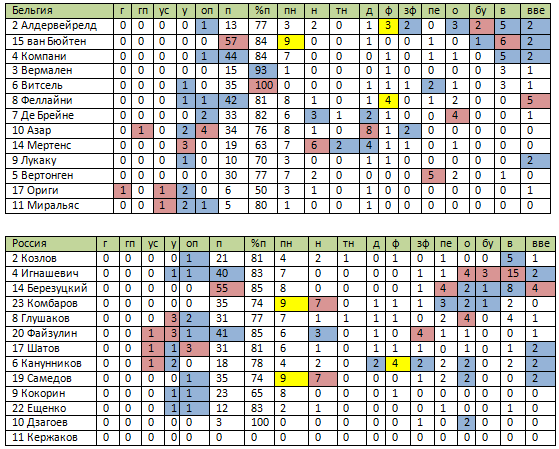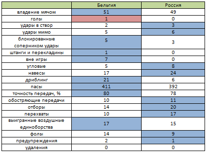 Бельгия - Россия. Статистический анализ матча