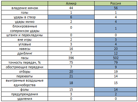 Алжир - Россия. Статистический анализ матча