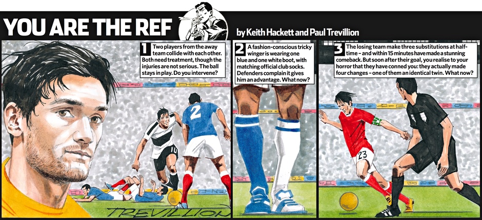 Второй выпуск популярной серии футбольных комиксов с задачками о непростых для арбитров ситуациях – в блоге «Англия, Англия».