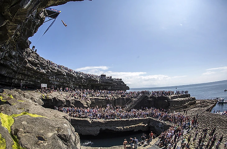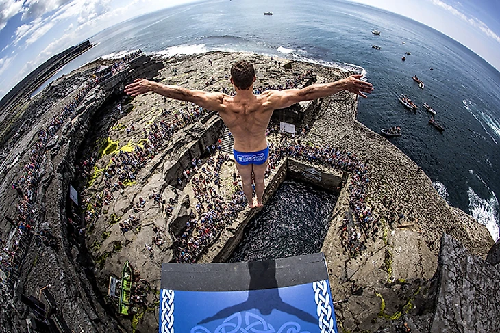 На ирландском острове Инис Мор прошел этап Мировой серии Red Bull Cliff Diving, где спортсмены-хайдайверы прыгали с высоты 28 метров в коварное «Логово Змея». Своими сумасшедшими прыжками запомнились многие – в том числе чех Михал Навратил (на фото).