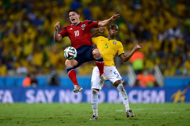 В четвертьфинальном матче бразильцы пытались остановить колумбийца Хамеса Родригеса любыми способами. Фото Getty Images
