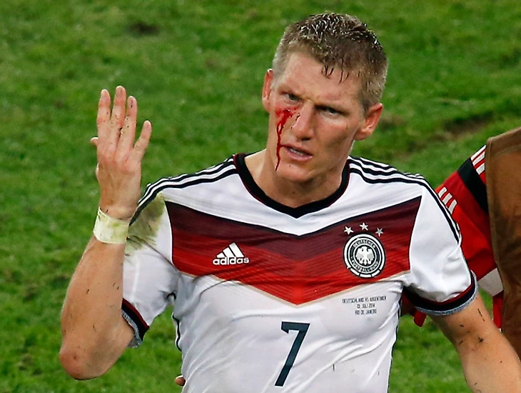Бастиан Швайнштайгер привел команду к победе на чемпионате мира с не совсем целым лицом.