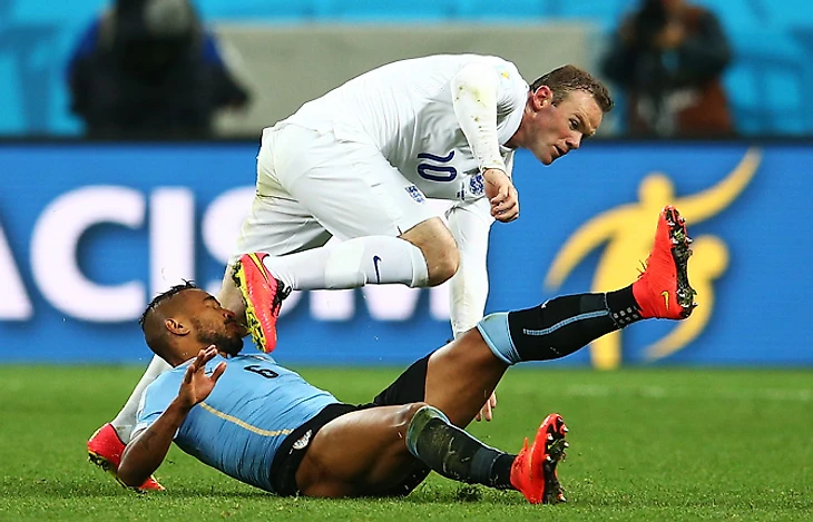Уругваец Альваро Перейра получил удар в голову, но когда увидел, что врачи сборной хотят его заменить, рванул обратно на поле.