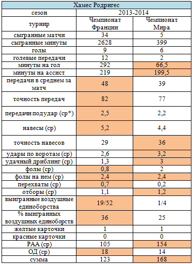 Мадридский «Реал» дабы не отставать от «Барселоны» провел один из самых громких трансферов межсезонья, купив за сумасшедшие 80 млн евро у «Монако» одного из лучших игроков прошедшего чемпионата мира Хамеса Родригеса. Чтобы понять, стоит ли этот футболист таких бешенных денег, и чего нам от него ждать в новом коллективе, взглянем на его статистику за прошедший сезон.