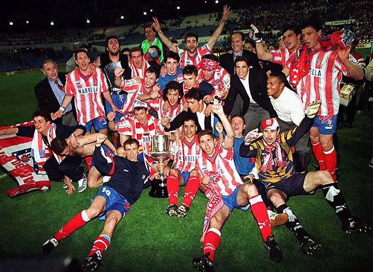 Успех «Атлетико» можно было сравнить с выстрелом в ночи – за год до этого клуб едва не вылетел в сегунду, и как-то подняться на волне успеха тоже не смог. Просто в одно время в одной команде собрались бравые ребята, которые прорубили себе окно в Европу и подарили титул будущему спасителю отечества.