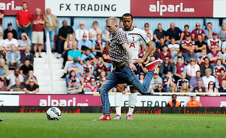 В лондонском дерби «Вест Хэм» – «Тоттенхэм» на поле выбежал болельщик, который сумел даже пробить по воротам хозяев. Кастильо рамку спас, но у стрикера все равно есть повод для гордости – он нанес больше ударов в створ ворот (один), чем пара нападающих «Вест Хэма» Карлтон Коул – Кевин Нолан (ноль).