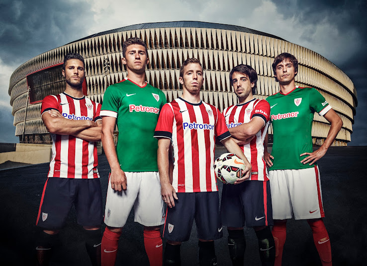 Гостевая же форма, первое впечатление оставила - будто просто перекрасили прошлогоднюю в зеленый. Однако и тут есть интересные добавки. Конечно, опять же треугольный флаг Басконии внутри, но не только. Во-первых весь гостевой комплект оформлен в баскских цветах: зеленый, белый, красный, а вообще, появился не только красный воротник, но и симпатичные красные надплечные полосы, этакий милитарский стиль. В общем, мне очень по душе эта форма и я наверняка постараюсь приобрести одну из двух комплектов. Кстати, два года назад во время баскского европейского торжества мы тоже играли в гостевых-зеленых!