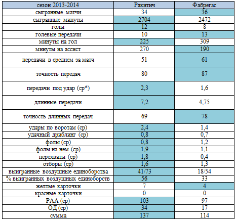 Если опираться на сухие цифры, то «Барселона» заметно выиграла от этого перехода. Во-первых, каталонцы заработали немало денег, так как Иван был куплен за 18 млн евро, а Сеск вернулся в Англию за 33. Во-вторых, Ракитич по большинству показателей превосходит Фабрегаса. Он в прошлом сезоне и моменты для партнеров создавала больше (2,3 против 1,6), и удары чаще наносил (2,4 против 1,4), и мячей забил на 4 больше, да и в обороне отрабатывал значительно старательнее (1,6 отборов и 1,8 перехватов против 1,3 отборов и 0,4 перехватов). Испанец имеет перевес только по среднему количеству передач (61 против 51), их точности (87% против 80%) и числу голевых пасов (13 против 10).