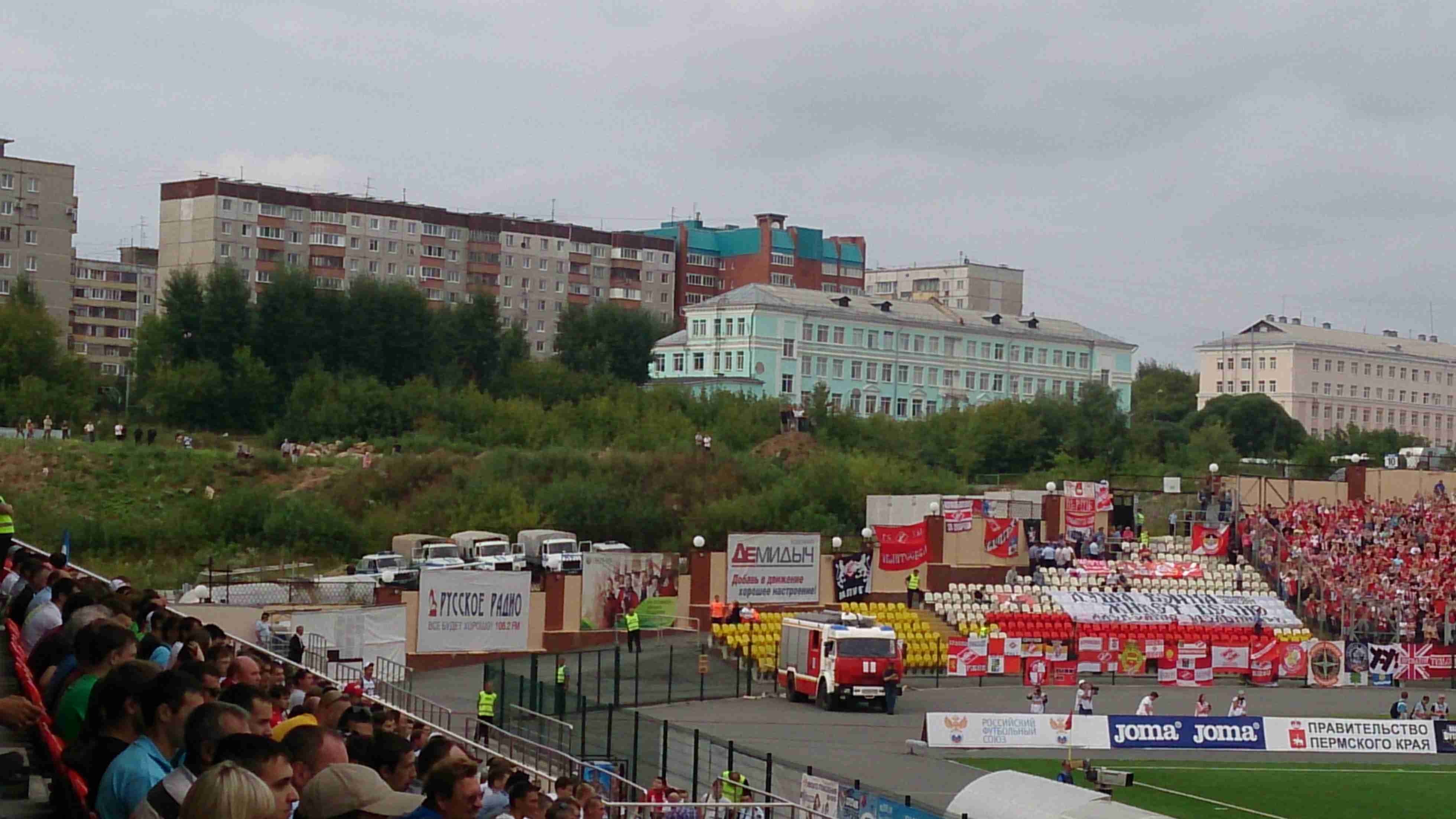 Это вызвало ожидаемую гневную реакцию у отцов с малолетними детьми. Им предлагалось снять с себя все спартаковское (а это футболки, шорты, шарфы) и идти на свои места, либо отправляться в своем одеянии на гостевой сектор. Споры, длившиеся минут по десять, ни к чему не приводили. Однако все же был найден альтернативный вариант в виде семейного сектора – на этом конфликт был исчерпан. До этого претензий к правоохранителям не было: прием гостей в городе был организован на уровне, болельщики спокойно гуляли по Перми, покупали сувениры и фотографировались.