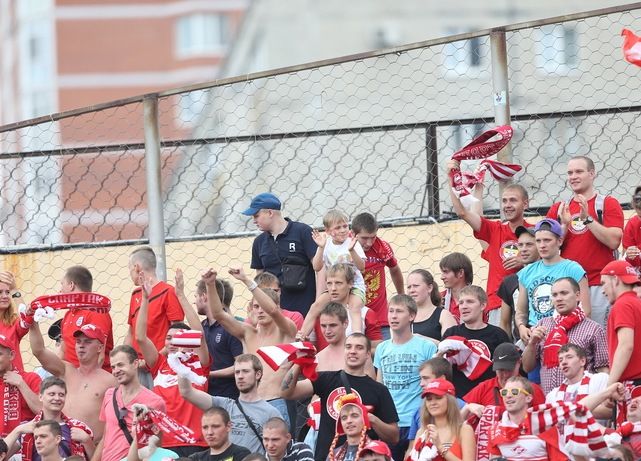 Минут за 10 до начала встречи гостевой сектор был заполнен. На центральной трибуне рядом с красно-белыми отцами и детьми в полном составе расположились дублеры "Спартака".