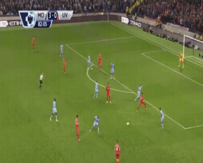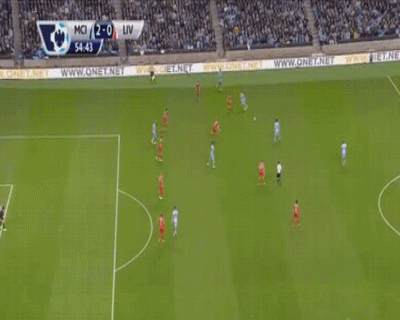 Третий мяч в сетку «Ливерпуля» влетел уже после того как Пеллегрини пустил в бой свежие силы. Навас и Агуэро заменили Сильву и Джеко соответственно. Хесус со своего фланга от центра поля выдал блестящий пас на ход Серхио. Свежий аргентинец очень легко убежал от все того же несчастного Деяна и в тритий раз огорчил Миньоле.
