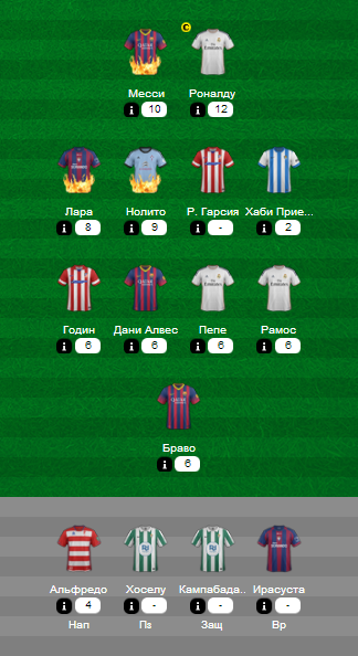 Итоги 1 тура 1 ГЭ можете посмотреть на сайте: http://fantasy-h2h.ru/la_liga