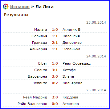 Итоги 1 тура H2H Liga BBVA 2014/2015