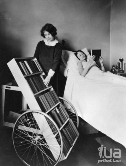 В 1928 в больницах были передвижные библиотеки для пациентов