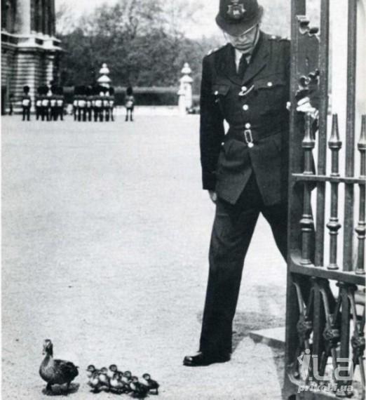 Смотритель зоопарка поливает пингвинов, 1930 год.