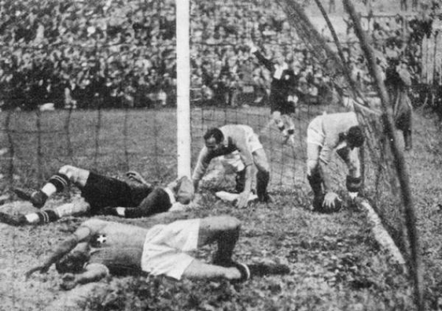 «Скуадра Адзурра» пробилась в полуфинал с превеликим трудом. В четвертьфинале случилась самая натуральная резня: матчи Италия – Испания, проходившие под пристальным взором Муссолини, войдут в историю футбола как одни из самых беспринципных и жестоких. В первом из них игру фантастического уровня показал испанский голкипер Замора, который отбил несколько десятков ударов по воротам. Итальянцы играли подло, калечили своих соперников, били их по ногам, в результате тот же Замора, весь в синяках и ссадинах, был просто не в состоянии сыграть в повторном матче. Испанцы вынуждены были заменить семь основных игроков! Но в переигровке Италия не смогла взять существенно ослабленную испанскую сборную голыми руками. Команде Муссолини помог швейцарский судья Мерсе, который засчитал грязный гол Джузеппе Меацци, а потом дважды отобрал у Испании ее голы.