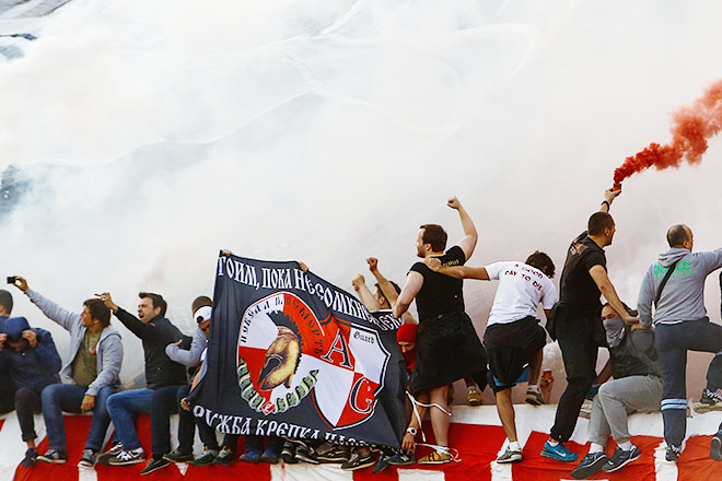 Вместе с самой командой в Москву приехала и вся основная фанатская братия «Црвены Звезды». Вкупе с главным ньюсмейкером восточноевропейского фанатского движения 34-летним Иваном Богдановым, который «вошёл в историю», сорвав четыре года назад матч своей сборной с Италией на выезде в Генуе. Тогда буйного серба по прозвищу Иван Грозный поймали только после матча, обнаружив в багажнике туристического автобуса. А на этот раз он вовсю размахивал на трибуне «Открытие Арены» флагом ДНР.