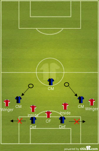 Чуть позже оставшемуся центральному полузащитнику было поручено задание – обороняться против одного из инсайдов: