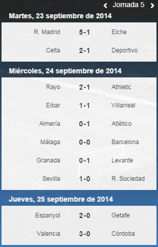 Вчерашними матчами завершился 5 тур Ла лиги, а уже сегодня матчем Эльче - Сельта стартует 6-й. Еле успеваю с итогами)):