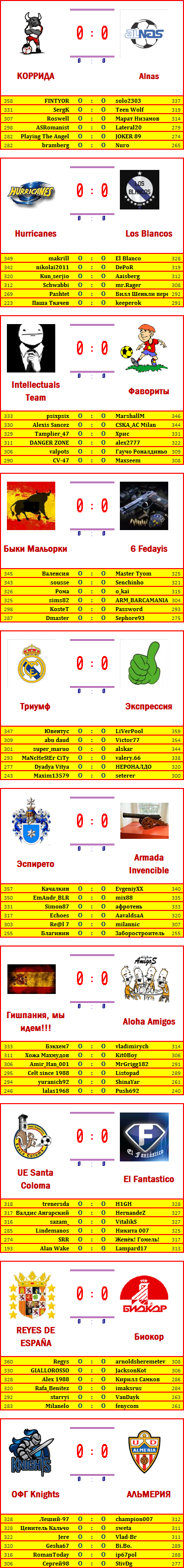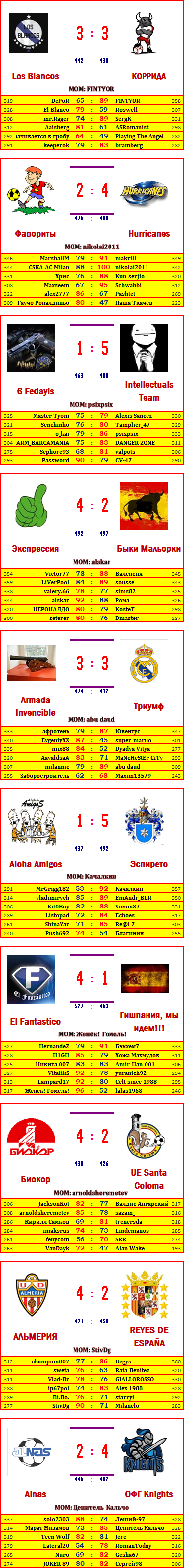 Лучший результат тура: nikolai2011 из команды Hurricanes (100 очков) с этой командой: