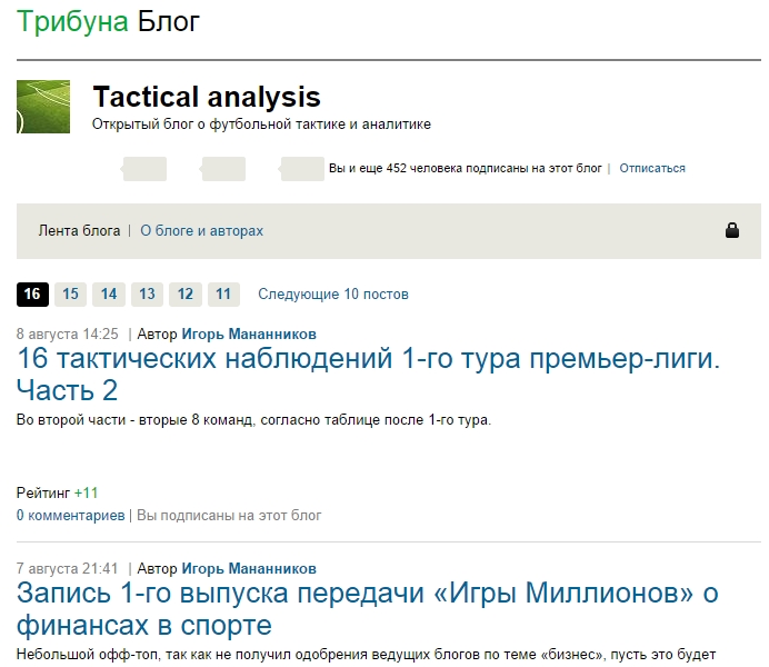 Его посты всегда наполнены не только очень толковыми тактическими разборами, но и разнообразными статистическими данными, которые отлично дополняют анализ игры. Считаю настоящим преступление, что на его блог подписаны всего 282 человека.