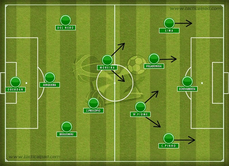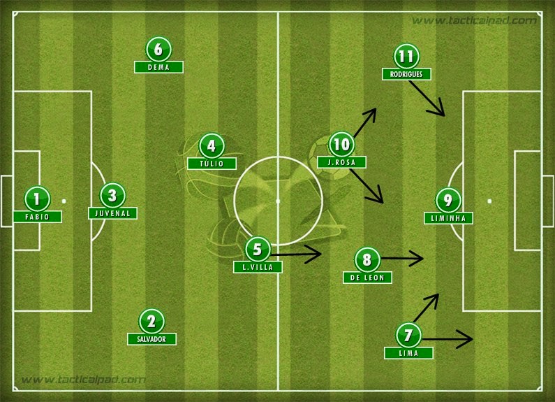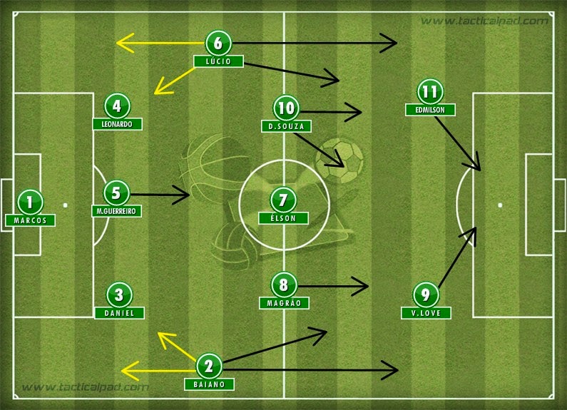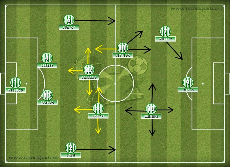 В 2003 году, на бумаге это была тактическая схема 4-1-3-2, но на практике Marcinho Гуэррейро, оставив двух защитников, нередко подлючался к контратакам вместе с партнерами Байано, Лусио, Magrão и Диего Соузой. Команда в том сезоне (дивизион 2) славилась острыми смертельными контратаками. Молодые Edmilson и Vágner Love образовывали атакующую линию alviverdes.