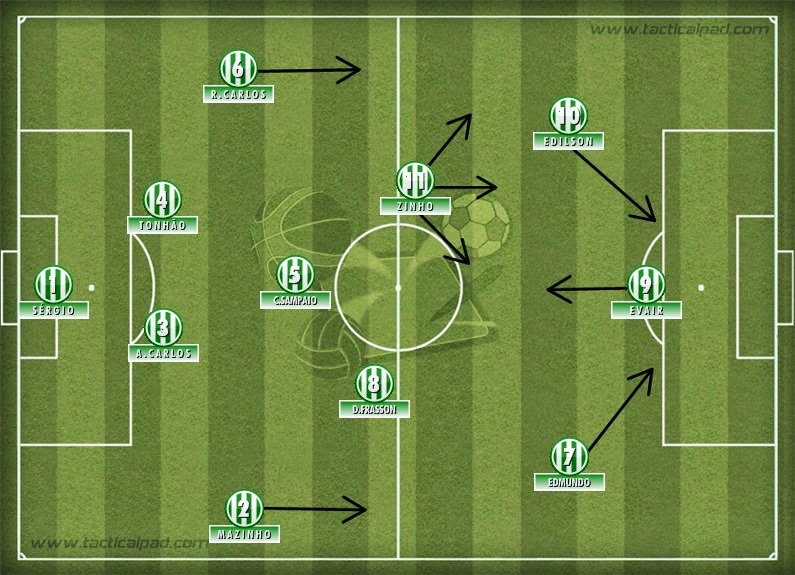 Трио “EEE” создал трио нападающих, однако, в поле, Evair останавливался ни для оружий наступления пьесы вместе с Zinho. В 4-3-1-2 была схема невидимости используется.