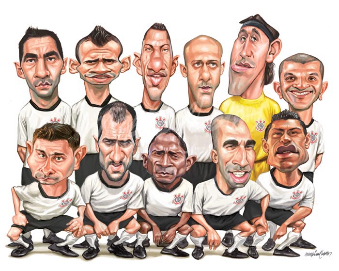 Коринтианс - обладатель Копа Либертадорес. Вверху: Chicão, Leandro Castan, Ralf, Alessandro, Cássio e Fabio Santos. Внизу: Alex, Danilo, Jorge Henrique, Emerson Sheik e Paulinho.