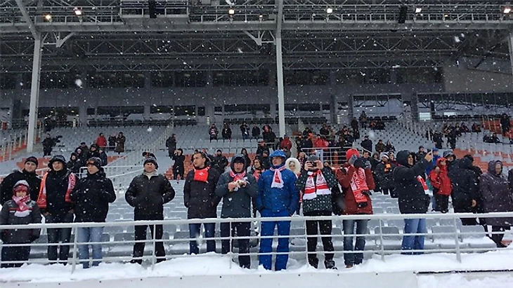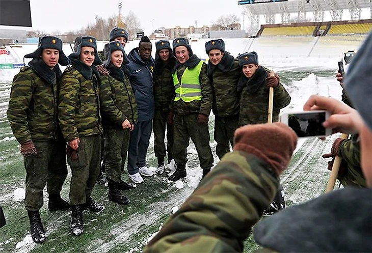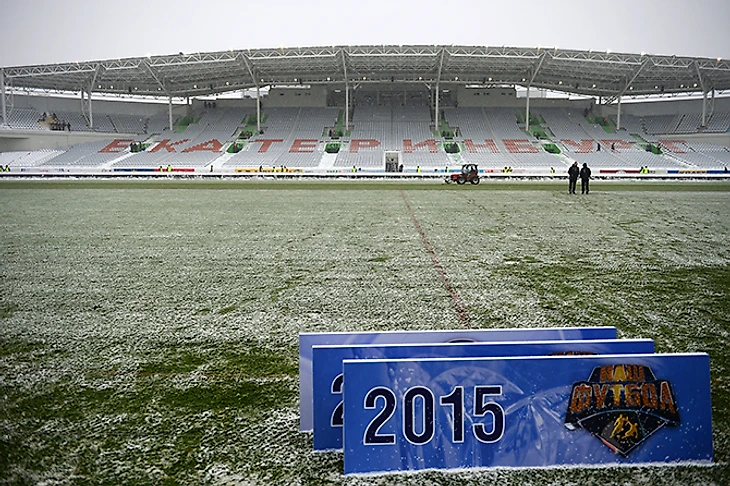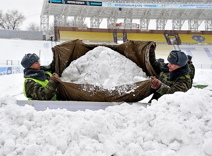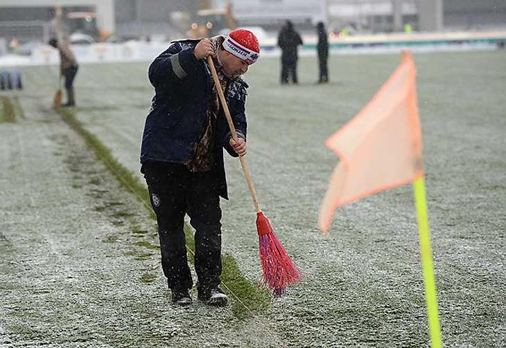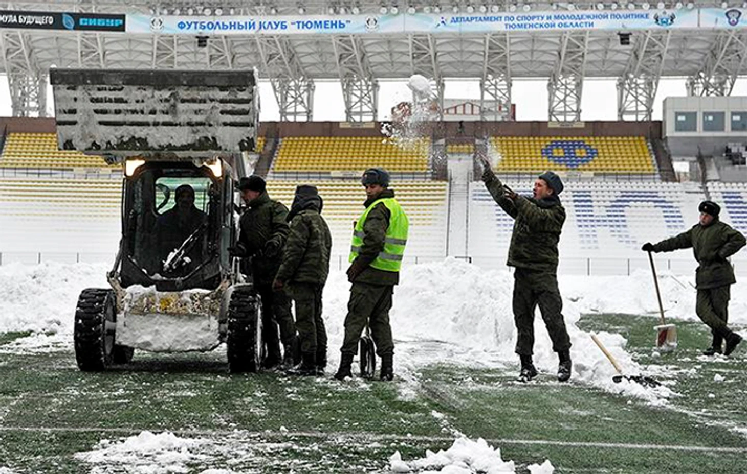 В Россию пришла зима: в Екатеринбурге массово очищали поле лопатами, а африканцы из «Анжи» в шоке полетели в Тюмень.