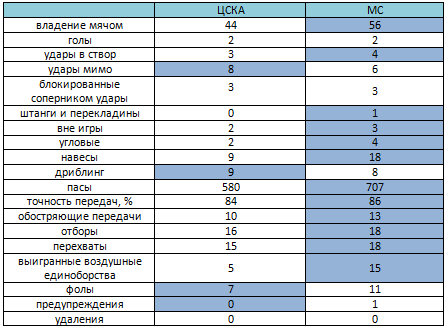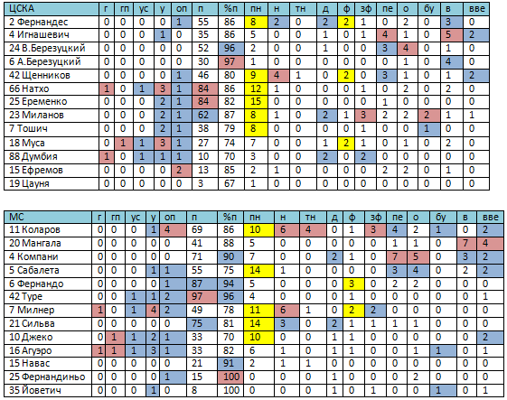 ЦСКА - «Манчестер Сити». Статистический анализ матча