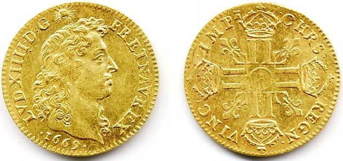 Монетой наибольшей номинальной стоимости был Луидор (от фр. LouisdOr, - золотой Луи), равный десяти ливрам. Он был введён в обиход Людовиком XIII, в 1640 году, содержал 6,75 грамм золота и имел диаметр 26 мм. Аналогичную Луидору стоимость имел Пистоль. Так назывался во Франции испанский золотой Дублон.
