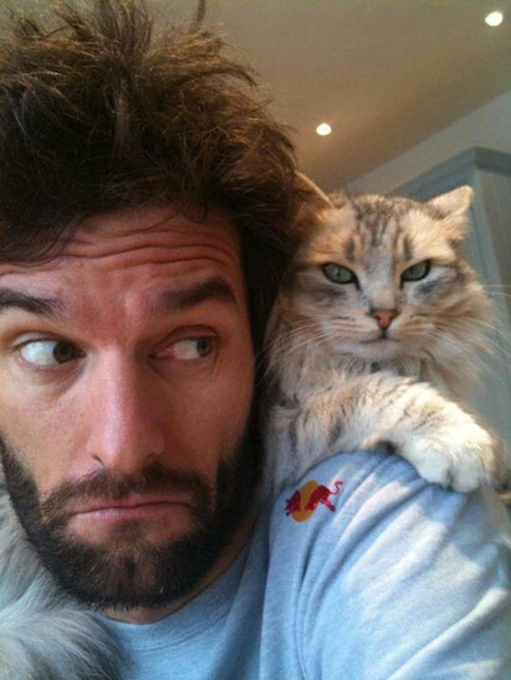 Четырехкратный чемпион «Формулы-1» пытается отрастить небольшую бородку, но получается не очень.