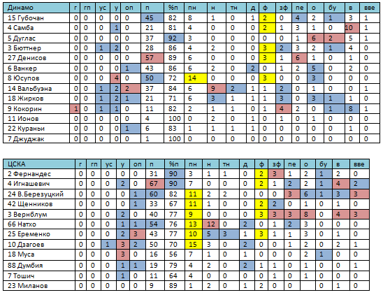 Скажем еще пару слов про Натхо и Еременко. Бибрас по общему количеству передач уступил паре центральных защитников ЦСКА, что уже говорит о многом. Он выполнил 12 навесов, но ни один из них не был точным, он нанес всего 1 удар и создал 1 момент для партнера. Пожалуй, только в плане работы в обороне к нему не может быть претензий. 3 отбора и 2 перехвата – это неплохой результат. Еременко в созидании был немного полезнее, он 3 раза выводил партнеров на ударные позиции и дважды пробил сам. Но как уже отмечалось, всего этого было мало.