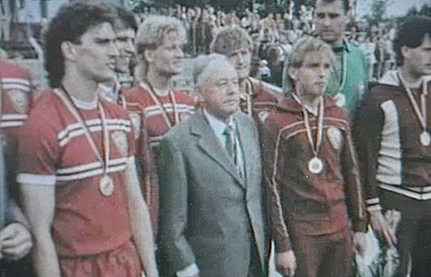 1987 год. Награждение золотыми медалями «Динамо Берлин». Эрих Мильке посередине.