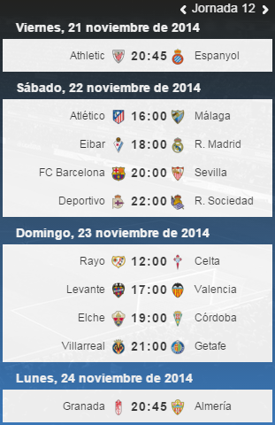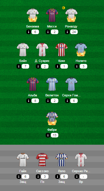 H2H турниры fantasy Liga BBVA 2014/2015. Итоги 11 тура, превью 12 тура