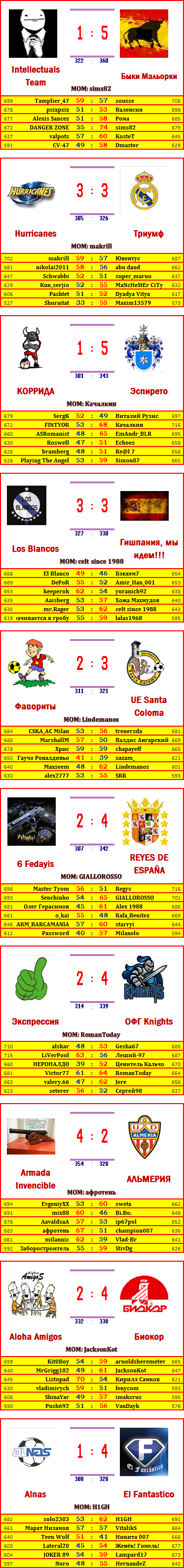 Лучший командный результат тура: Быки Мальорки (во второй раз подряд) - 360 очков.