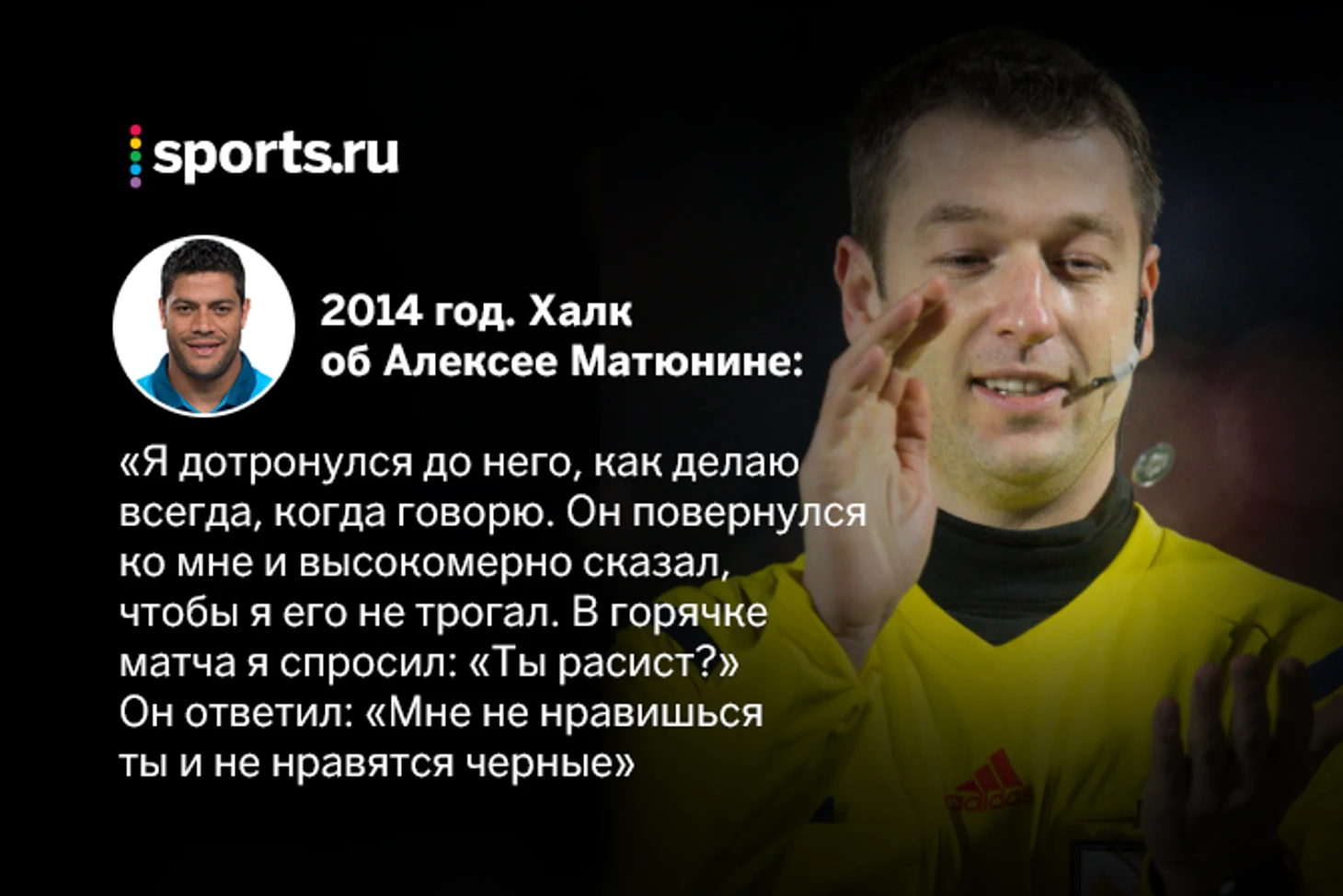 По словам Халка, судья Матюнин сказал ему: «Мне не нравишься ты и не нравятся черные». Это уже не первое подобное обвинение в адрес Алексея Матюнина.