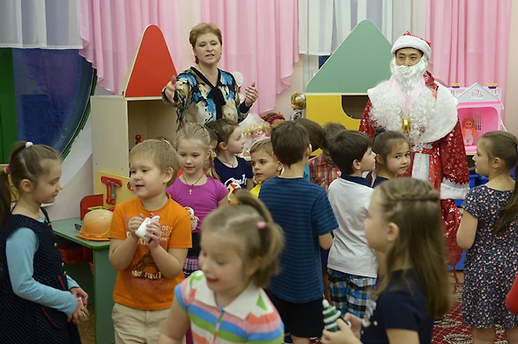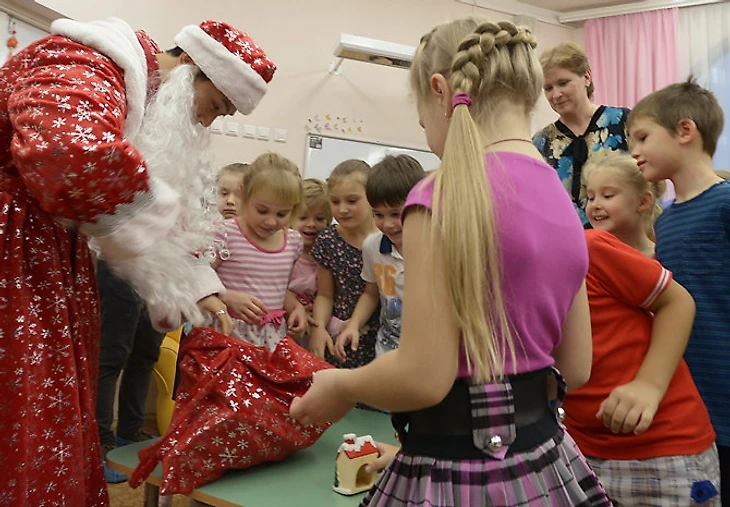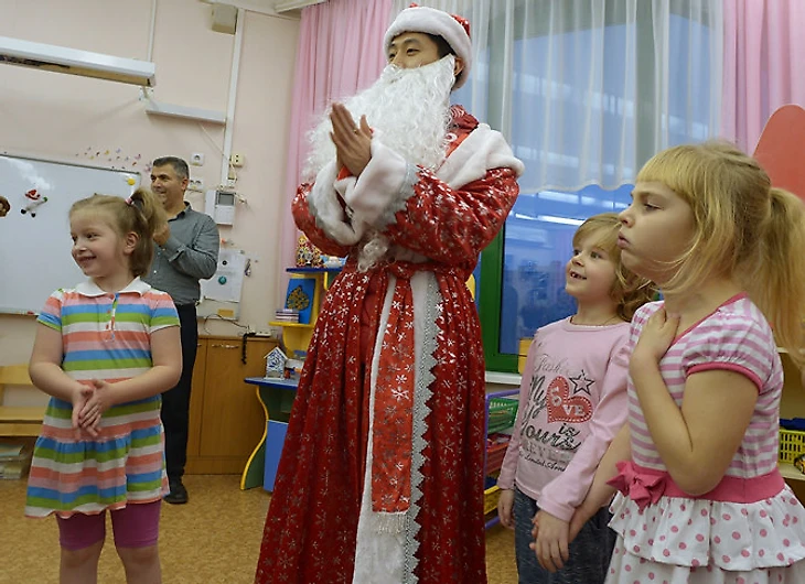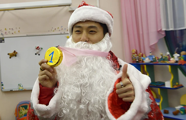 Шестикратный олимпийский чемпион по шорт-треку Виктор Ан в костюме Деда Мороза пожаловал в московский детский сад (дошкольное отделение гимназии 1565), чтобы в течение 45 минут поводить хороводы с детьми, раздать подарки и... даже попить компот.