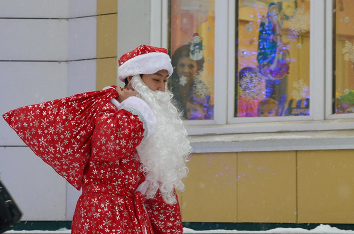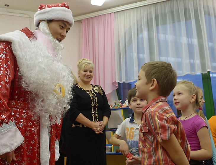 Подарки – детям. Виктор Ан в роли Деда Мороза