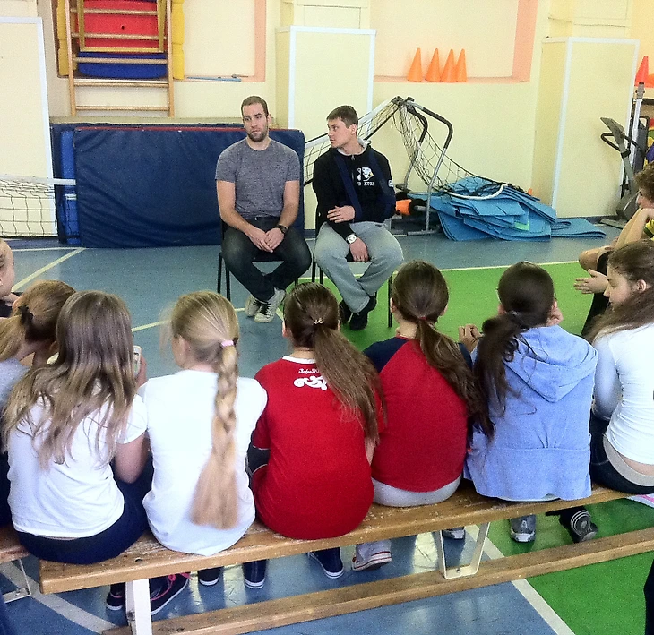 После тренировки «Трактора» 32-летний канадец Майкл Гарнетт, лучший вратарь пятнадцатой недели чемпионата КХЛ, полчаса крутит педали на велотренажере, а потом сразу бежит на парковку. Гарнетта ждут на уроке физкультуры в челябинской гимназии, куда его пригласили вместе с травмированным защитником Евгением Катичевым. От «Арены Трактор» до гимназии – больше двадцати минут на автомобиле: Гарнетт сам, без навигатора, находит дорогу туда, а интервью предлагает начать в пути.