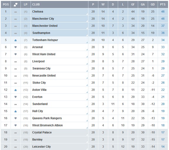 Теперь перейдем к самому интересному – к чемпионской гонке. После 20 туров в АПЛ установилось двоевластие, причем абсолютно по всем показателям. А случилось это потому, что команда Пеллигрини сломила сопротивление «Сандерленда», а подопечные Моуринью не смогли переиграть «Тоттенхэм». Обо всем по порядку.