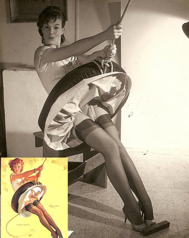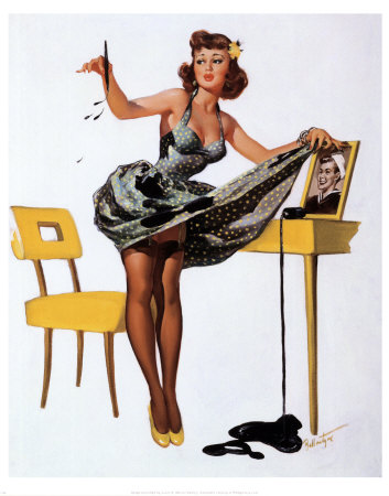 Так какая же она – красотка в стиле Pin-Up? Девушки охотно кокетничали, улыбались и подмигивали, как бы невзначай обнажая «интересные» части своего тела. Собственно, в этом и заключается особенность Pin-up’а - создается впечатление, как будто все красотки застигнуты врасплох: то юбка все время за что-то цеплялась, то девушка обо что-то спотыкалась и падала вверх ногами, то бретелька предательски спадала с плеча. Вот почему у многих из них на лице так и читается - ooops!
